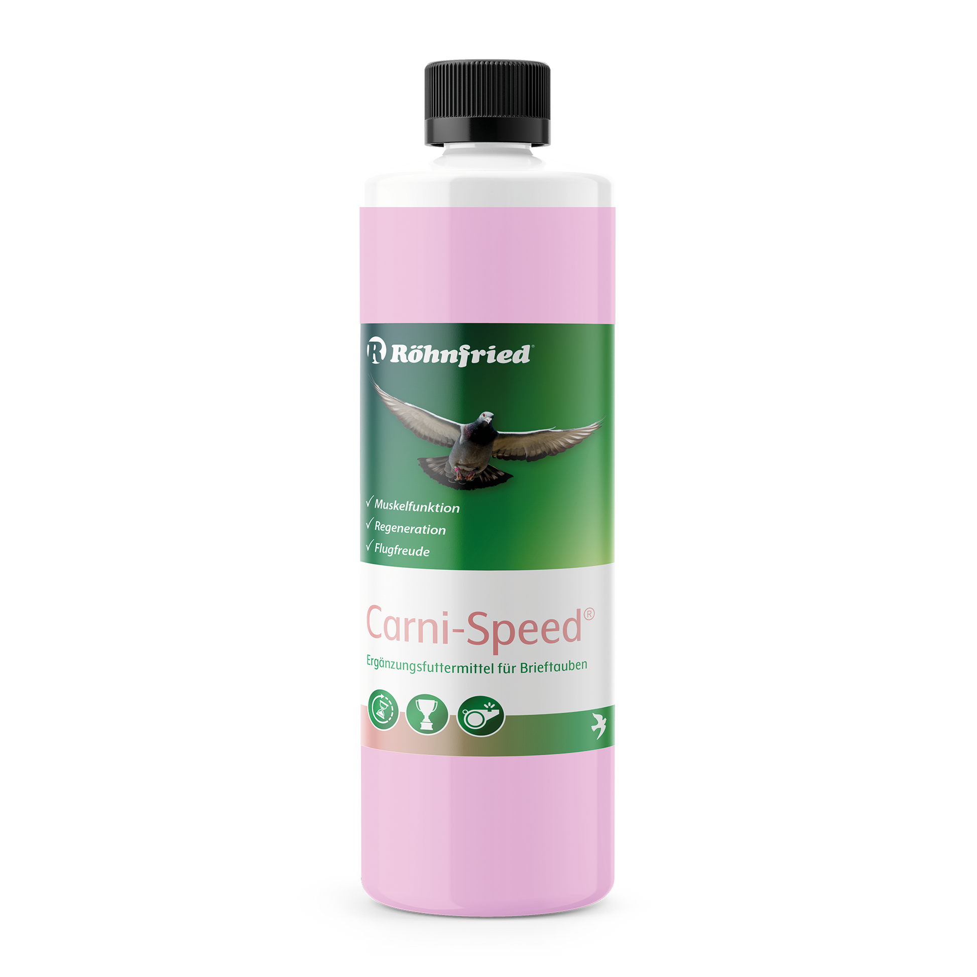 Do you want your pigeons to be more energetic and motivated during training and racing? With Carni-Speed , your pigeons will be at their best! Carni-Speed contains L-carnitine , a vitamin-like substance that plays a key role in the metabolism of fats in the pigeons' bodies, providing them with extra energy and greater motivation for training.