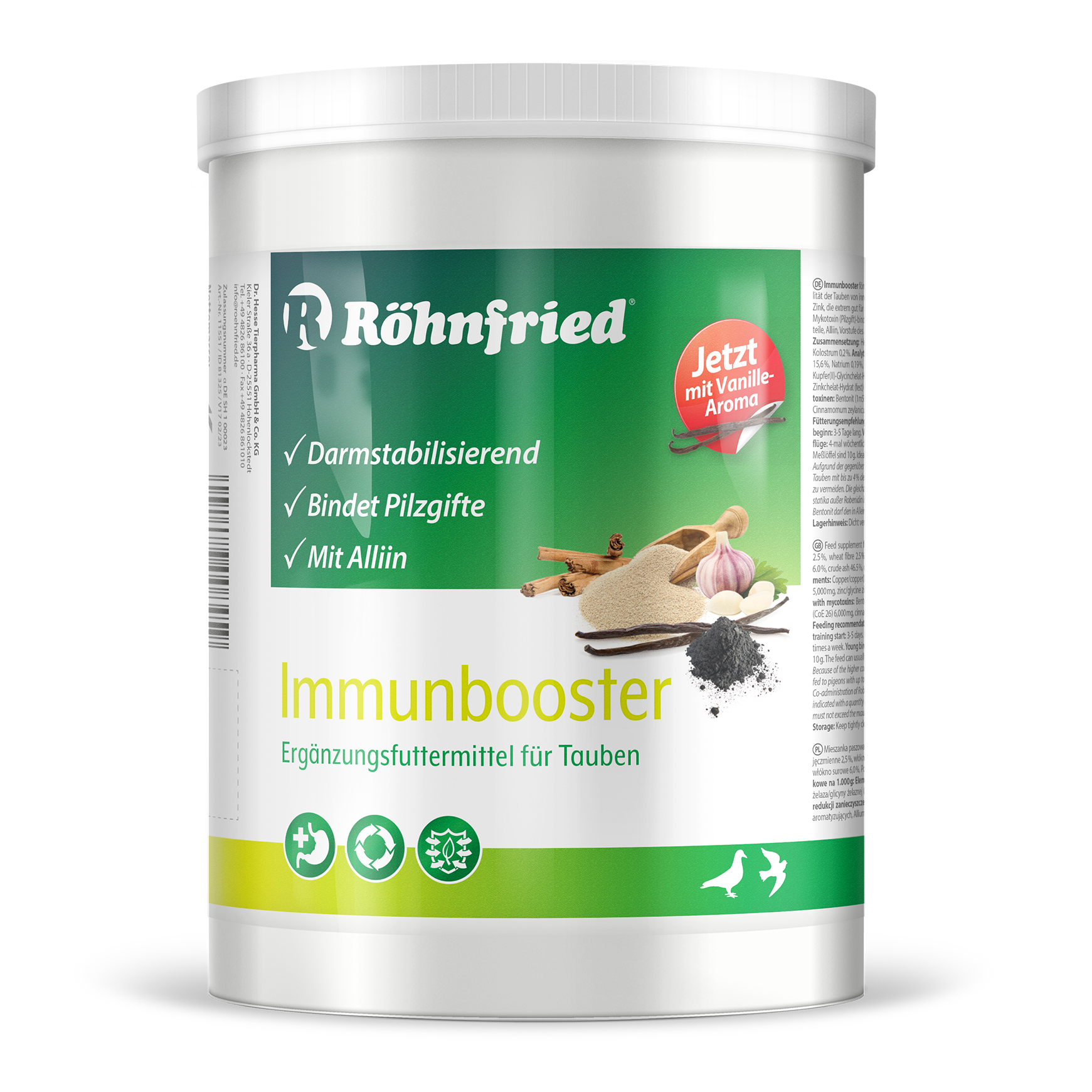 Immune Booster contains trace elements such as copper and zinc , which are quickly absorbed by the pigeon's body, boosting the immune system and helping the pigeon resist disease. It also contains alliin and colostrum to support the digestive system during periods of stress. Your pigeons will be at their best all the time!